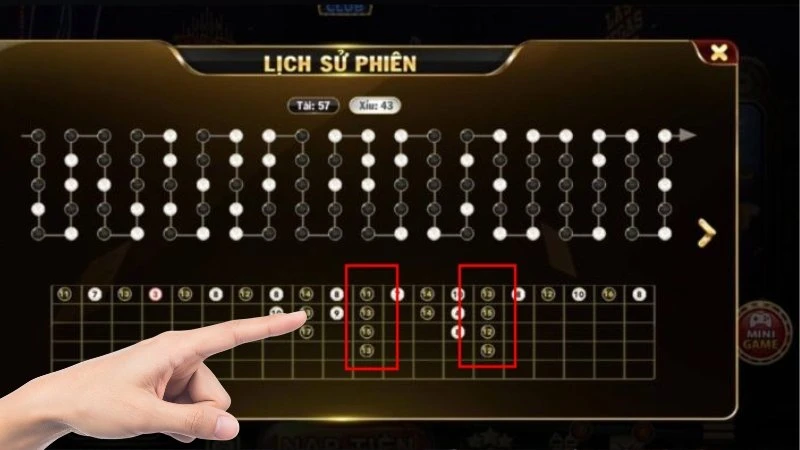 Ví dụ cụ thể như sau: Giả sử lịch sử 5 ván trước là Tài – Tài – Xỉu – Tài – Tài