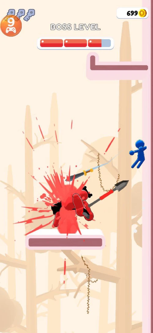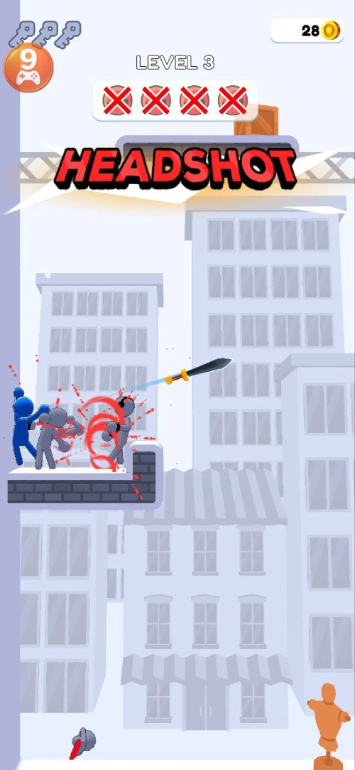 Cách chơi của game rất đơn giản, người chơi vuốt để ném vũ khí và tấn công kẻ địch. Người chơi có thể nhấn giữ vào màn hình để xuất hiện mũi tên điều chỉnh hướng, ném vũ khí, di chuyển, thời gian cũng được chậm lại. Cứ sau mỗi 5 màn chơi lại xuất hiện boss, độ khó tăng dần, đầy thử thách.